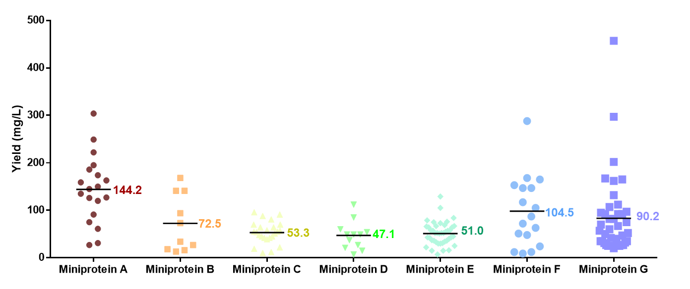 With CHO, Cell-Free, and E. coli systems under one roof, we match each AI-designed protein to its ideal host. We deliver yields of 50-400µg, which is more than sufficient for affinity screening.