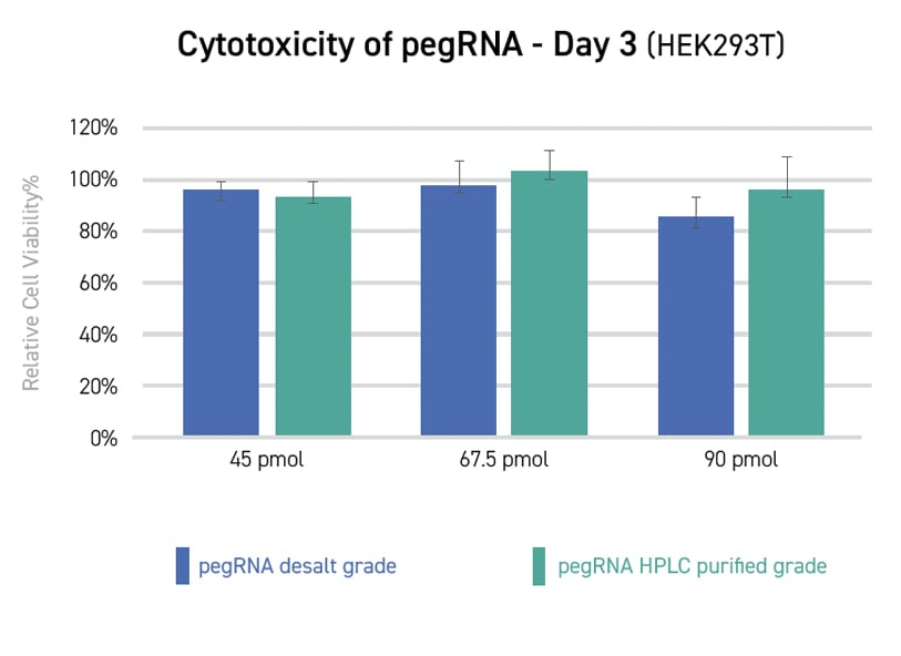 - Both desalt and HPLC purified pegRNA showed low cytotoxicity
