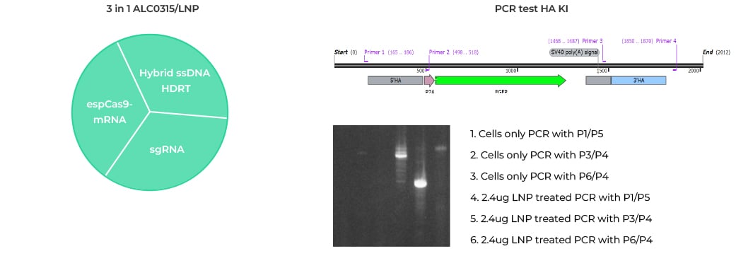 Try our catalog mRNA_LNP products, including SM102, LP01, and ALC0315 LNP formulations loaded with mRNA expressing eGFP, F-Luciferase or eSpCas9, delivered in just 5 days!